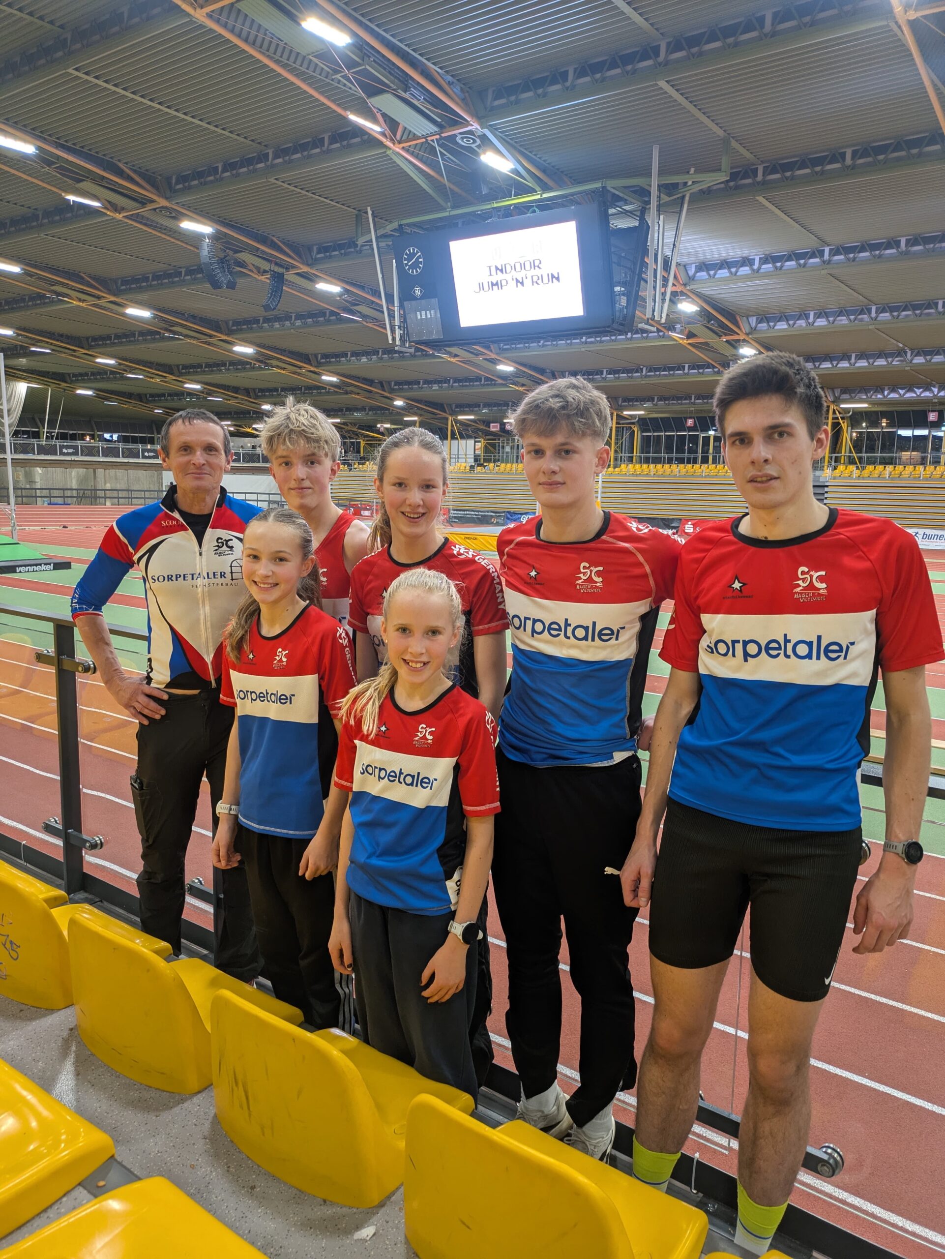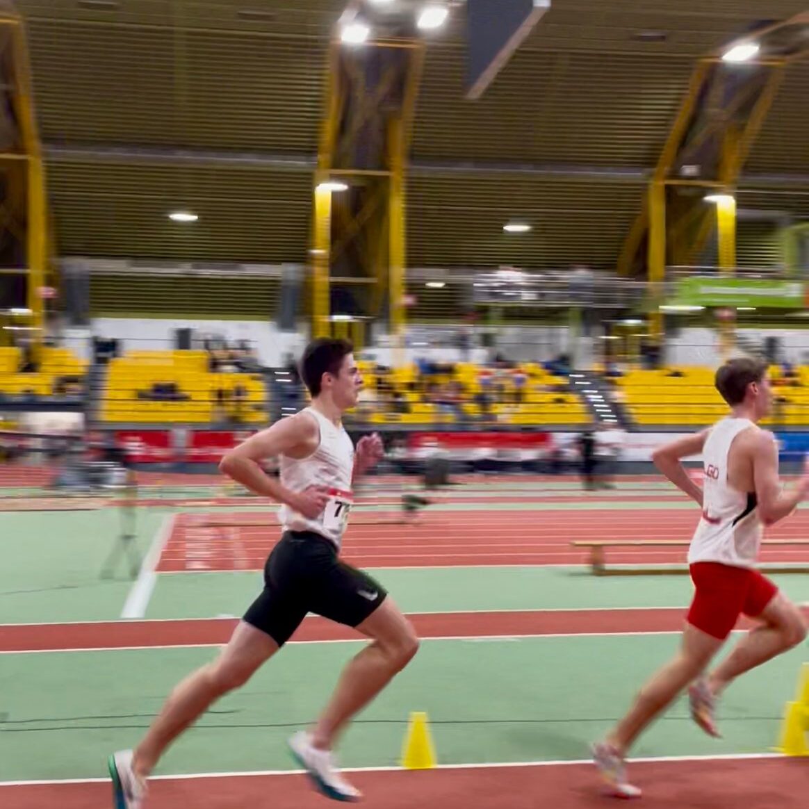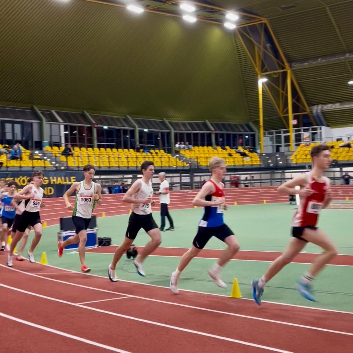 Aus Sicht des SC war der 3000-Meter-Lauf das absolute Highlight des Tages. Früh setzten sich vier Läufer vom Feld ab, darunter auch Tobias Hermann. Dahinter positionierten sich Julian und Luca auf den Plätzen sieben und acht. Nach 1000 Metern betrug der Rückstand der Verfolgergruppe bereits fünf Sekunden – doch auf dem zweiten Kilometer wurde dieser vollständig aufgeholt, vor allem dank eines beeindruckenden Zwischenspurts von Luca.
