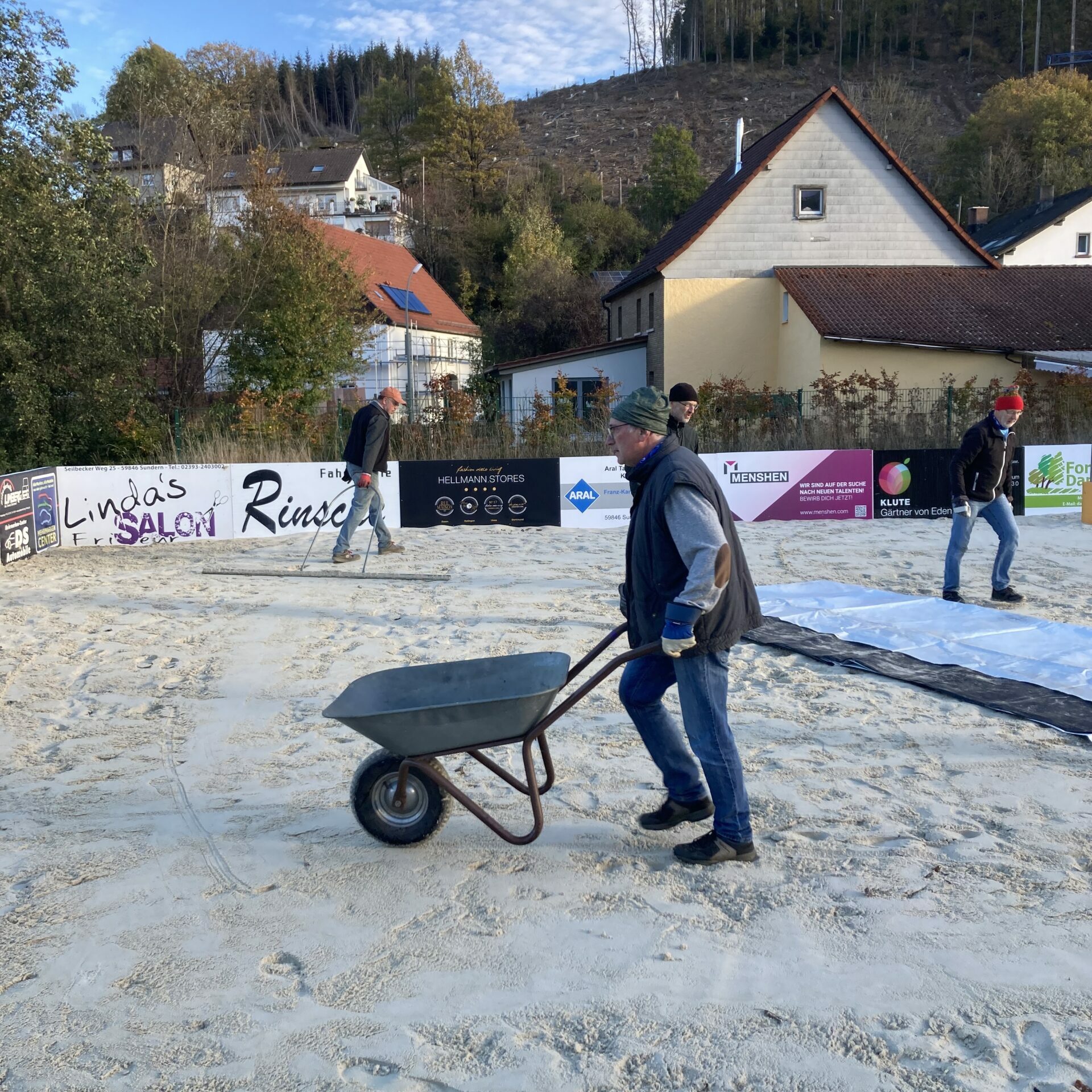 Wie jedes Jahr wird der Beachplatz abgedeckt , die Halle nochmal gereinigt , das Wasser abgestellt, die Tribüne vom Laub befreit, der Rasen gemäht und der Platz allgemein kontrolliert und aufgeräumt.